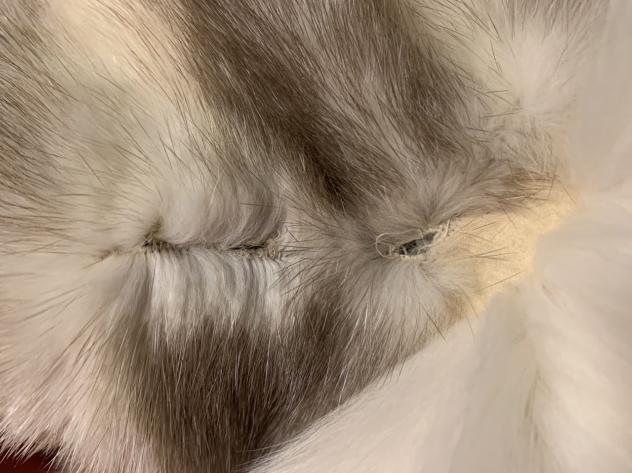 When sewing, use a small, even stitch to blend with the surrounding fur.